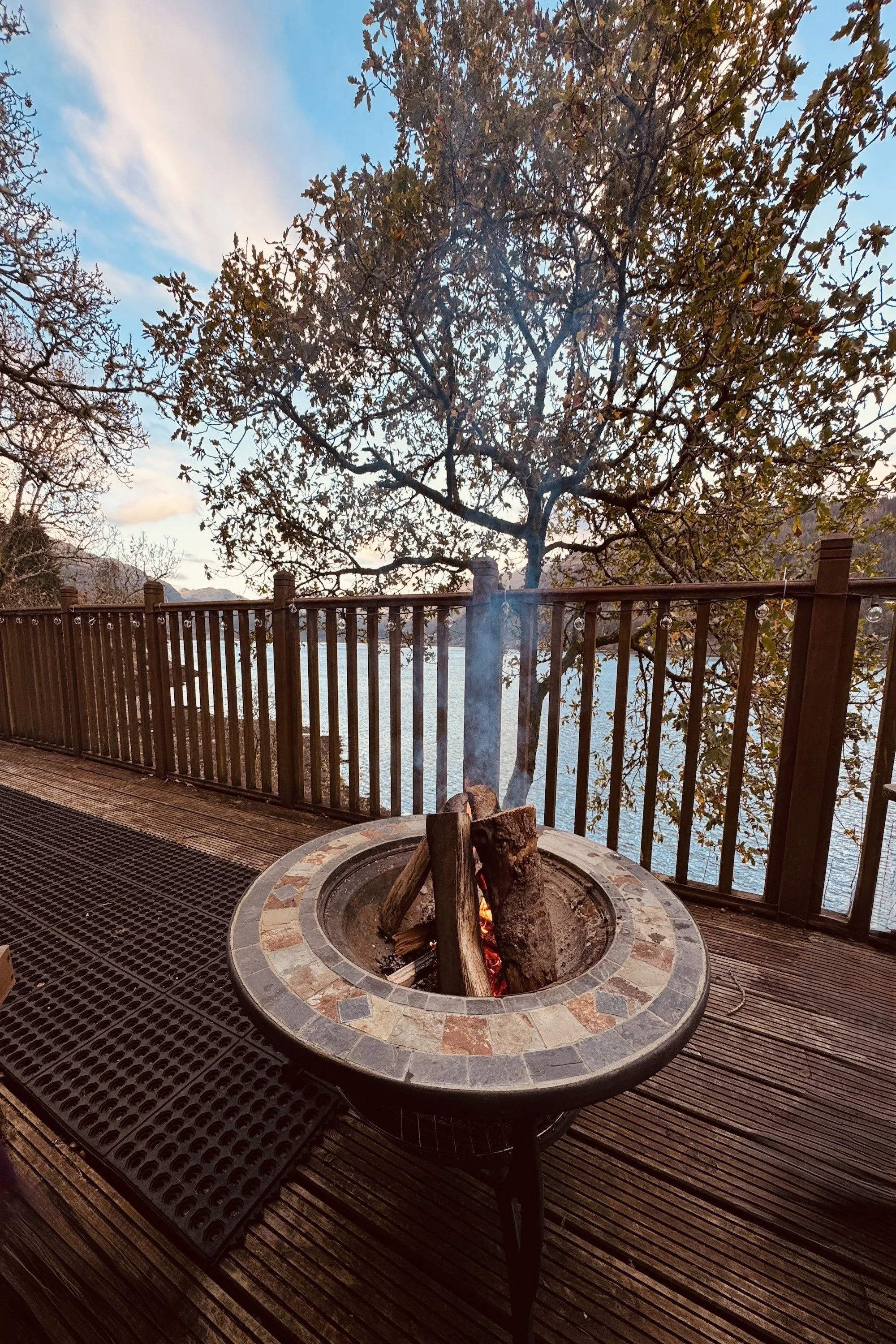 Woodland cabin with fire pit overlooking the loch