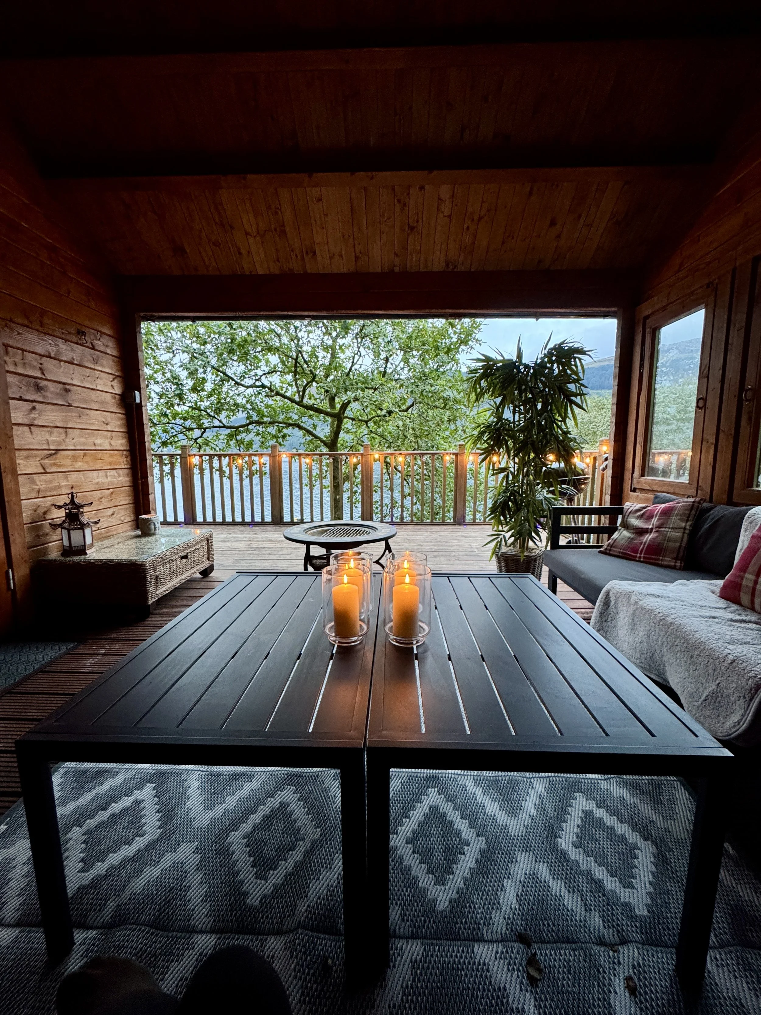 Lochwood House combines spacious indoor living with exceptional outdoor surroundings, creating a flexible retreat venue in Argyll. Inside, multiple living rooms provide natural breakout areas for workshops, small group sessions or quiet time, while the large dining space brings everyone together with ease. Outside, two decking areas offer space for movement sessions or relaxed gatherings overlooking the loch. The woodland cabin, complete with covered seating and a fire pit, adds an additional setting for group discussions or evening sessions. With direct access to the shores of Loch Goil, the house offers a practical and inspiring base for nature-led retreats in Scotland.