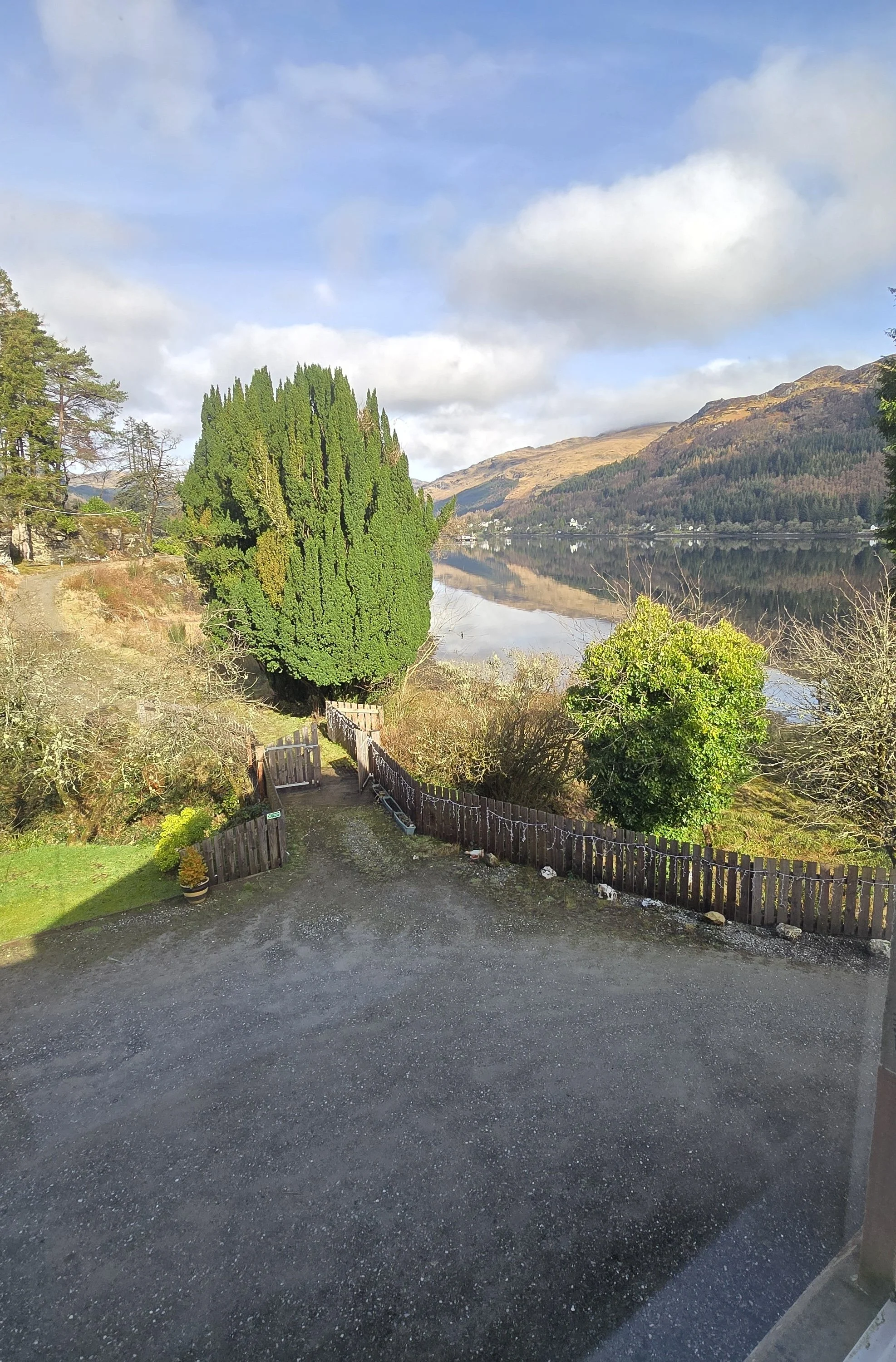 This inviting room features a side view of the loch and a versatile king-sized bed that can be configured as a twin. It also includes a private en-suite bathroom with a shower, offering comfort and flexibility for your stay.